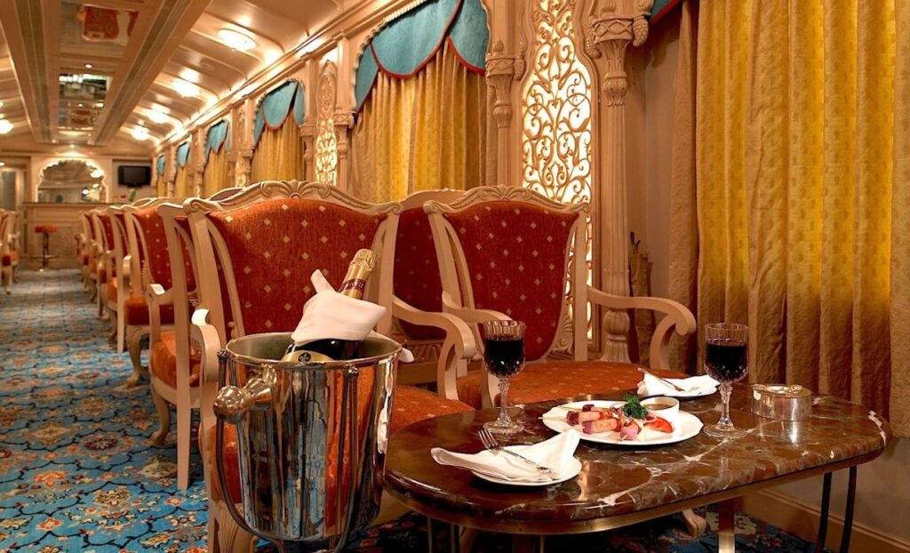 Opérant dans des destinations emblématiques telles que Bengaluru, Mysuru, Hampi, Badami et Goa, le Golden Chariot permet aux invités d’explorer des sites classés au patrimoine mondial de l’UNESCO, des temples anciens et des villes vibrantes avec un style incomparable. Chaque wagon est conçu avec des sculptures complexes, rappelant les dynasties royales du sud de l’Inde, créant une atmosphère véritablement majestueuse à bord.